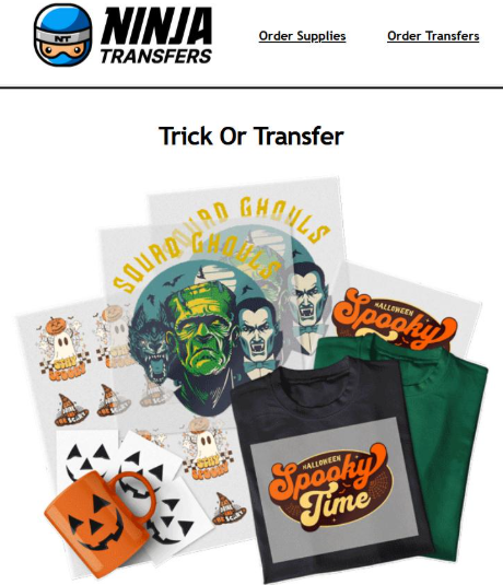The brand also automates emails with Klaviyo (+ Klaviyo’s Segments AI). Catch a glimpse of this “Trick-or-Transfer” email campaign for Halloween marketing.