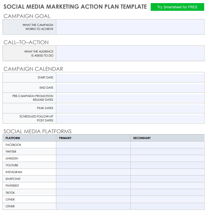 Check out the following action plan template for SMM marketers.