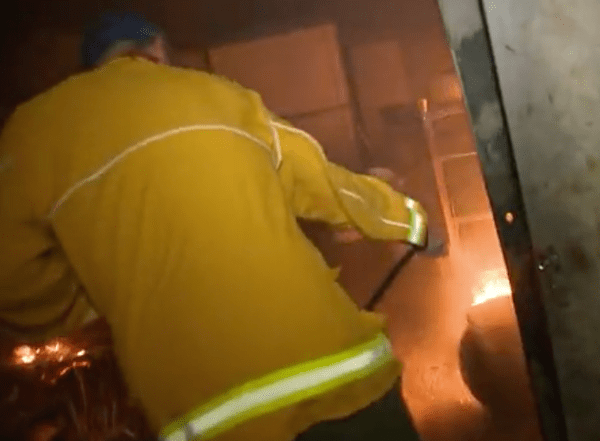 He picked up a garden hose, turned the spigot and walked around to the side of the home to put out two areas that were on fire.